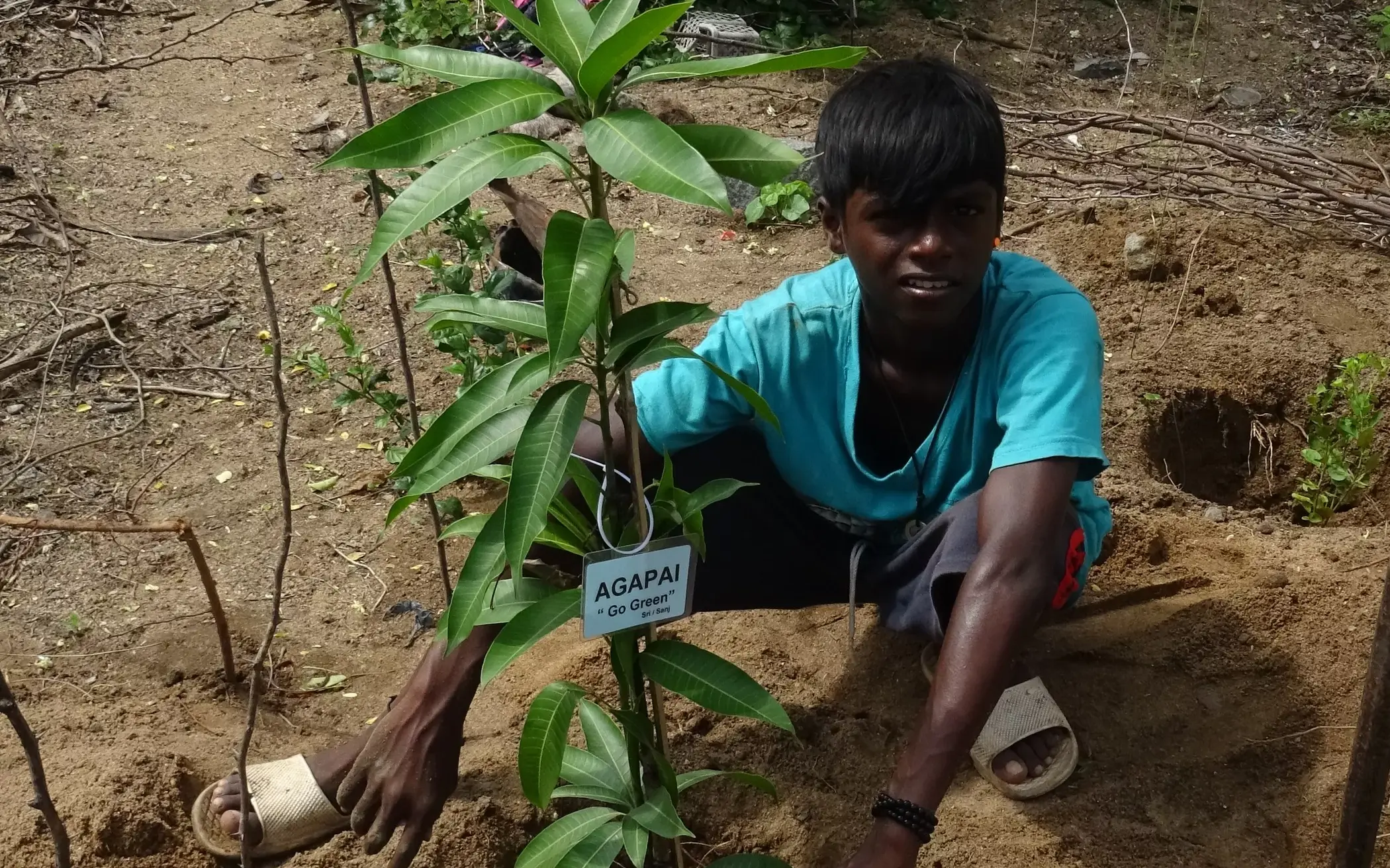 Planting fruit trees to do our part in restoring our green cover, while also providing nutrition and a place of shade.